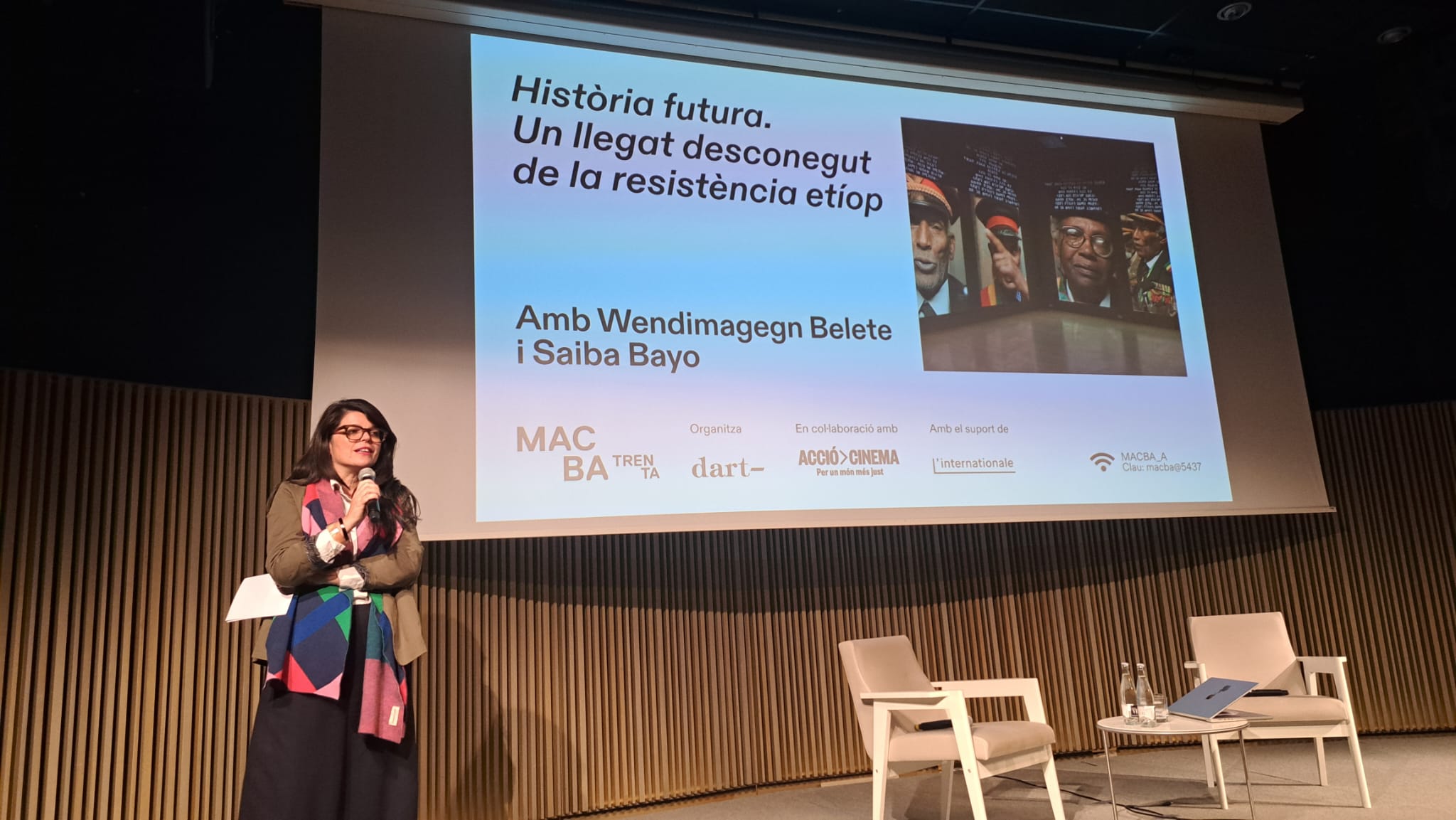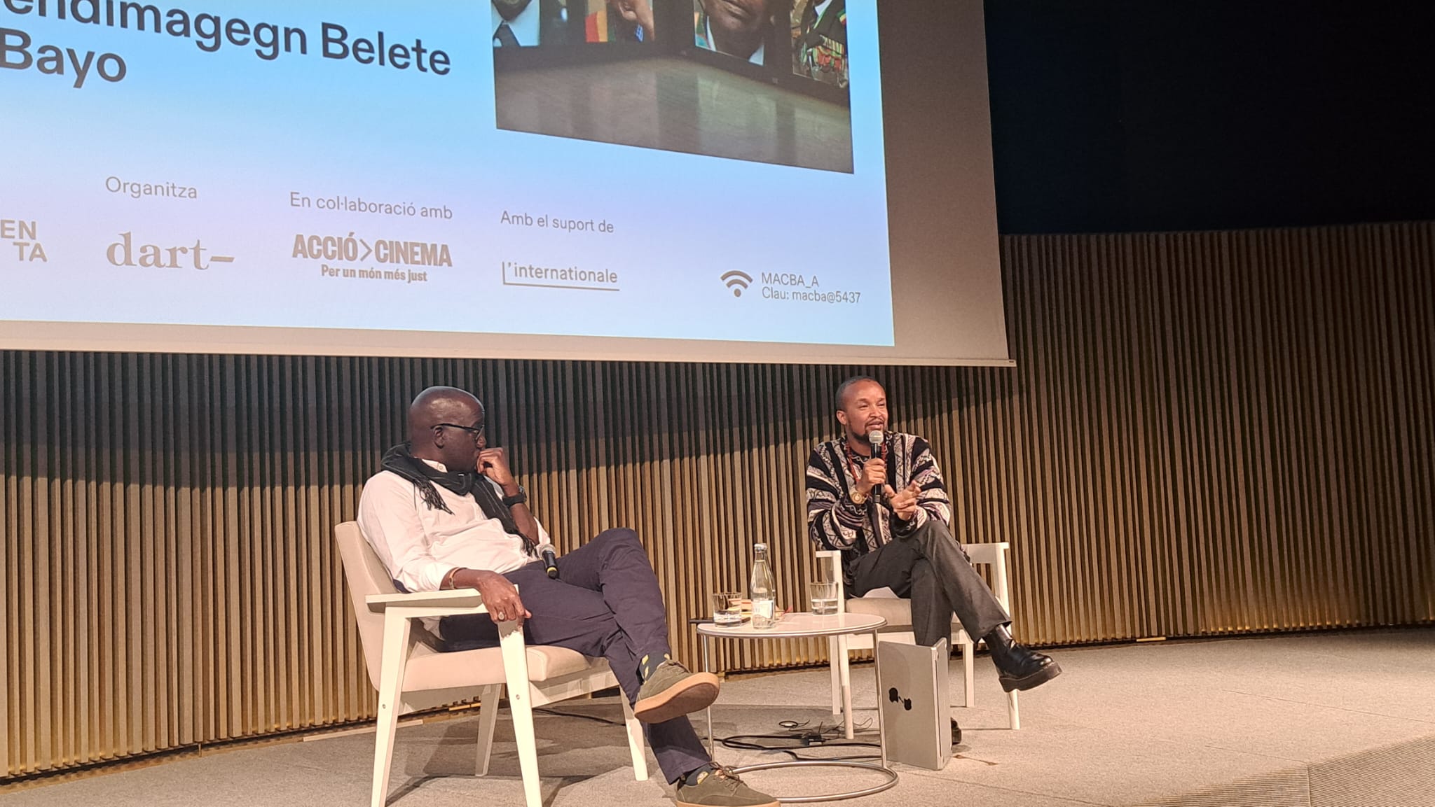 La sessió va ser presentada per Elvira Onagni Ose, directora del MACBA i comissària de l’exposició “Panàfrica“; i va comptar amb la participació d’Andrea Costafreda, Directora general de Cooperació al Desenvolupament.